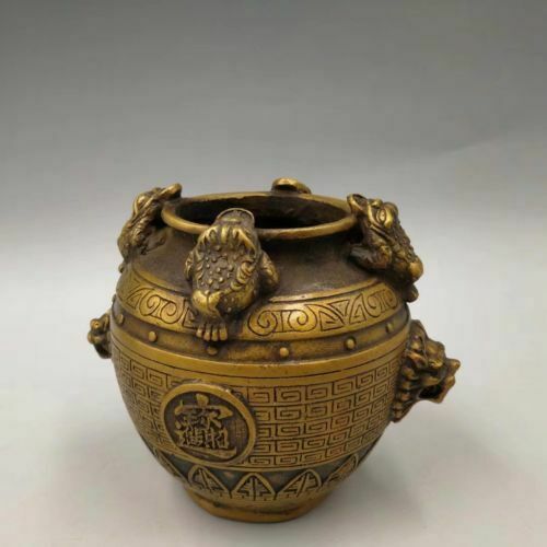 Chinese Antique Brass carved lion Go pot Tea pot tank