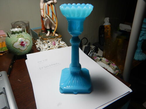 Title (ebay affiliate link): Portieux Vallerysthal French Blue Opaline Milk Glass Swirl Candlestick Holder