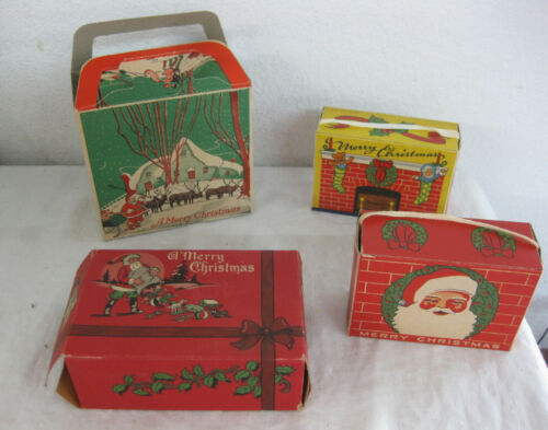 4 Vintage CHRISTMAS Gift/Candy BOX Container USA Happy New Year STOCKINGS Santa