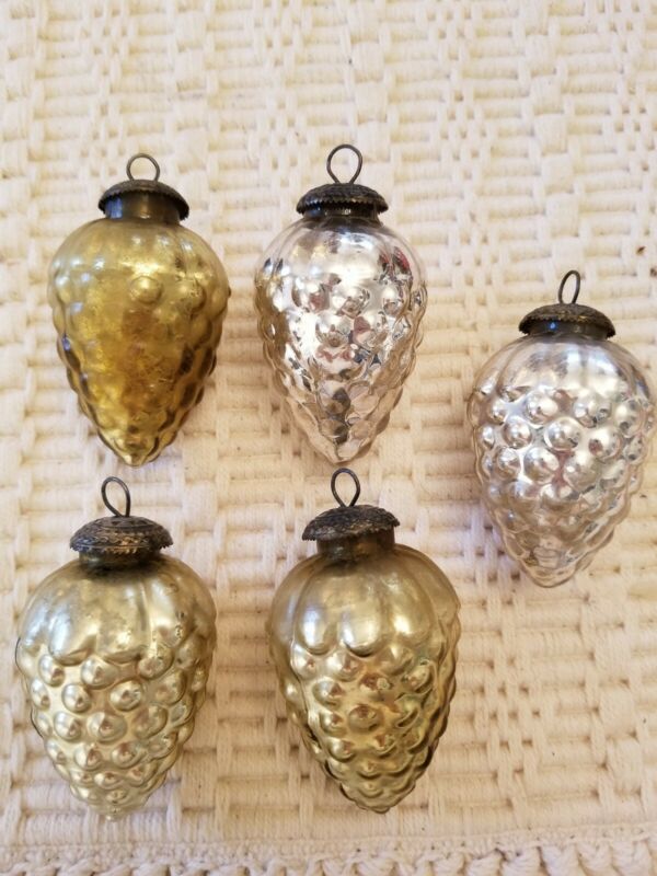 Title (ebay affiliate link): Set 5 Vintage Mercury Glass Grape Fruit Cluster Kugel Christmas Ornaments