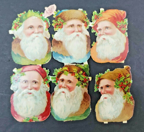 Title (ebay affiliate link): Lot of Six Vintage Raphael Tuck Santa Claus Faces Die Cut Embossed Scraps