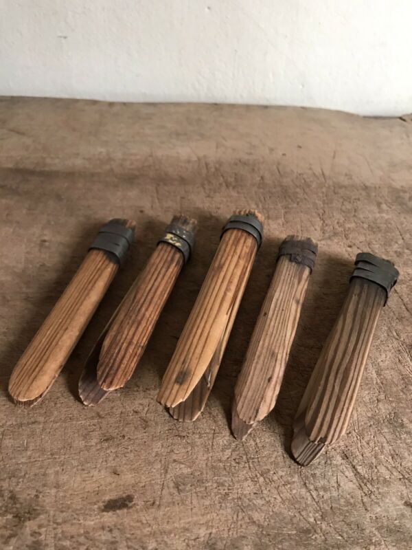 Title (ebay affiliate link): 5 BIG OLD Antique Hand Carved Wooden Treen Clothespins Tin Banded Patina AAFA