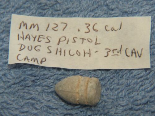 Title (ebay affiliate link): HAYES PISTOL MINIE BALL SHILOH CAVALRY CAMP CIVIL WAR BULLET