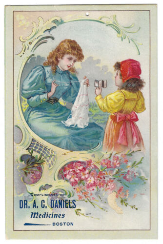 Title (ebay affiliate link): Dr. A. C. Daniels, Liniment "Oster Cocus" Decay Is Death, Sewing Mother And Girl
