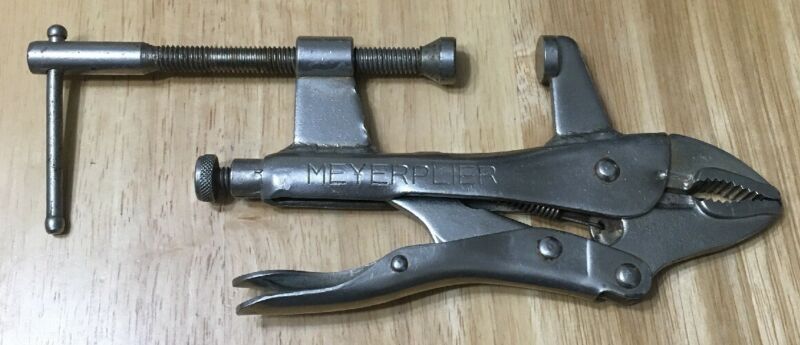 Title (ebay affiliate link): Vintage MEYERPLIER portable vise grips tool w/side clamp pat D260476