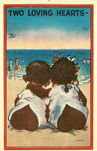 Title (ebay affiliate link): OLD BLACK AMERICANA POSTCARD " TWO LOVING HEARTS- "