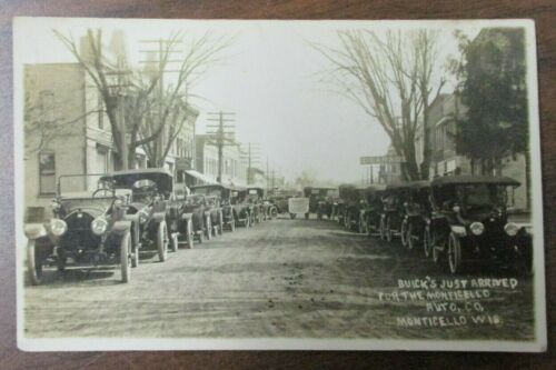 Title (ebay affiliate link): 1912? RPPC Photo Postcard Monticello WI Vintage Buicks
