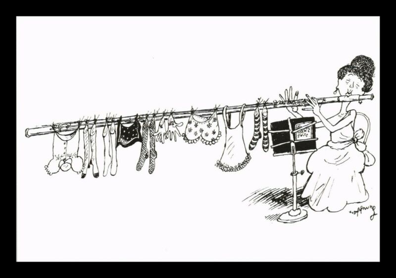 Title (ebay affiliate link): DR JIM STAMPS WOMEN PLAYING BASS FLUTE MADE IN ENGLAND CONTINENTAL SIZE POSTCARD