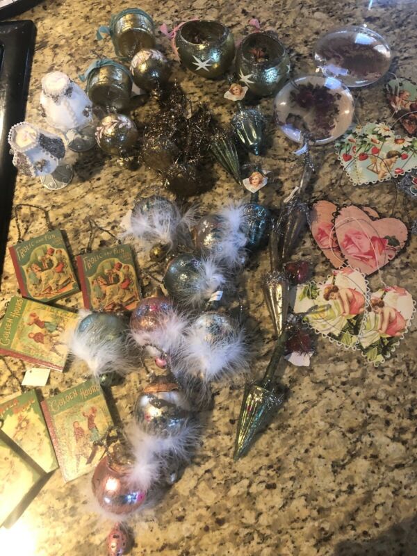 Title (ebay affiliate link): Victorian Trading Company Mercury Glass And Tinsel Christmas Ornaments Huge Lot