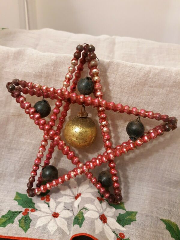 Title (ebay affiliate link): Antique Glass Bead Mercury Christmas Tree Ornament Wire Red Star Gold Blue Ball
