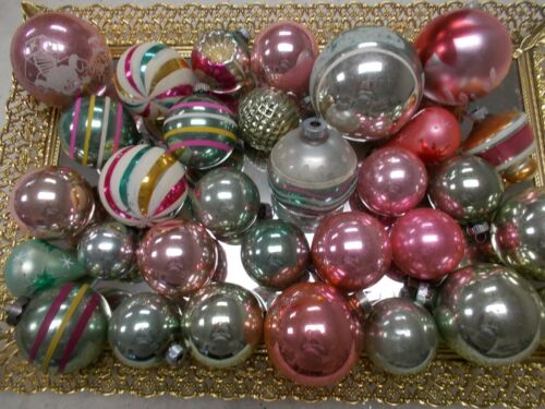 Vintg Glass Christmas Ornaments Lot/30 W Germany USA Poland Shiny Brite Pinks