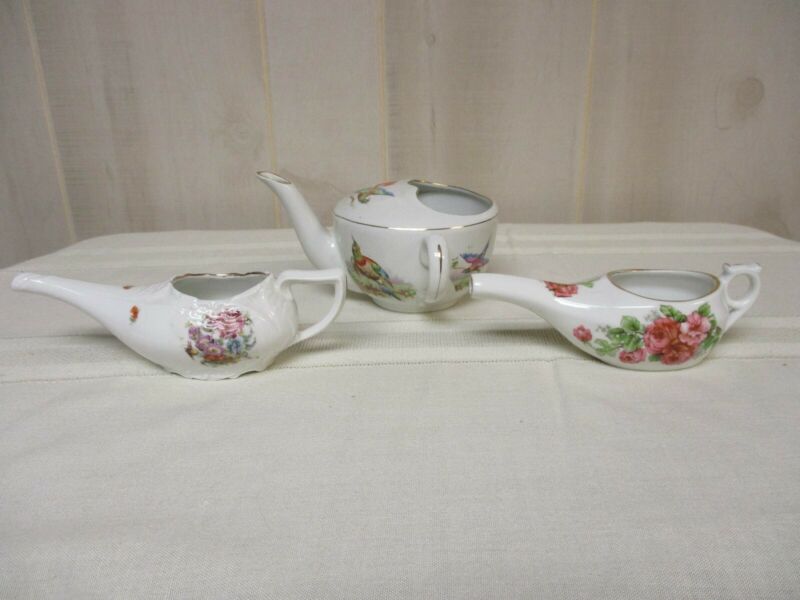 Title (ebay affiliate link): Vintage Lot of 3 Porcelain Invalid Feeders~Floral & Birds