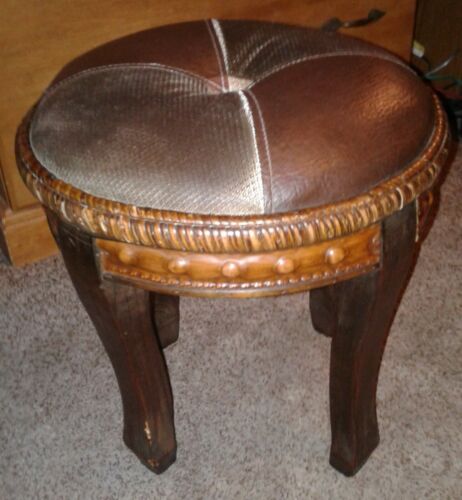 Title (ebay affiliate link): Footstool / Cow Milking Stool - Vintage Antique Upholstered Leather and Fabric