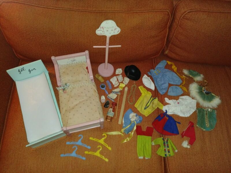 LOT VINTAGE 1950s VOGUE GINNY JILL JAN DOLL CLOTHES FURNITURE ACCESSORIES TREE