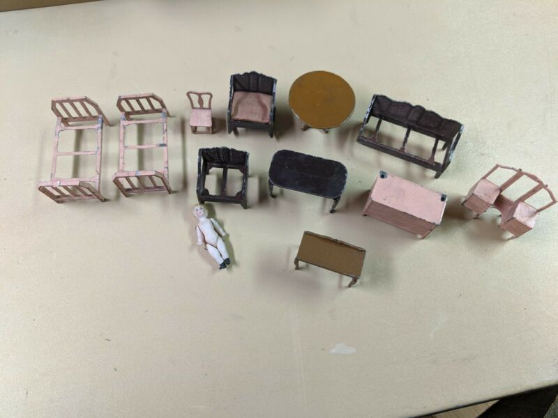 Title (ebay affiliate link): Vintage metal dollhouse furniture and small doll