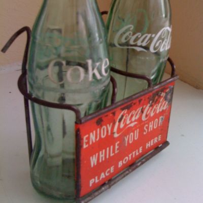 Title (ebay affiliate link): Vintage Coke Cola Shopping Cart Drink Holder
