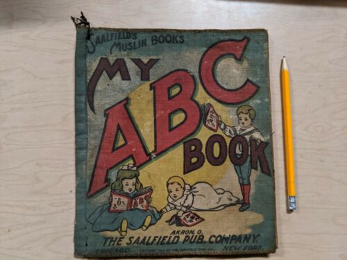 Title (ebay affiliate link): SAALFIELD PUB. COMPANY very old Muslin cloth children''s book (1904) "My ABC Book