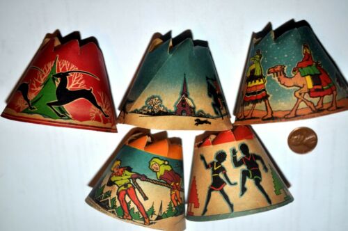 5 Vintage 1936 WHIRL-GLO paper spinners REVOLVING CHRISTMAS TREE light shades
