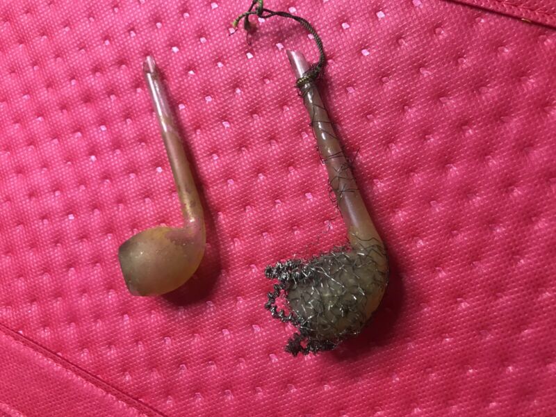 ANTIQUE GLASS Christmas Tree PIPE ORNAMENTS, Two Blown Glass Pipes