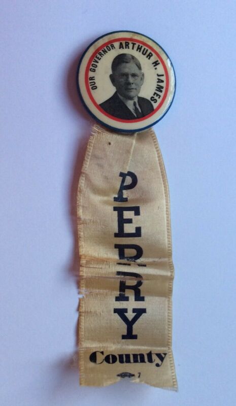Title (ebay affiliate link): Political Badge Button Pinback Pennsylvania Governor James Perry County Ribbon