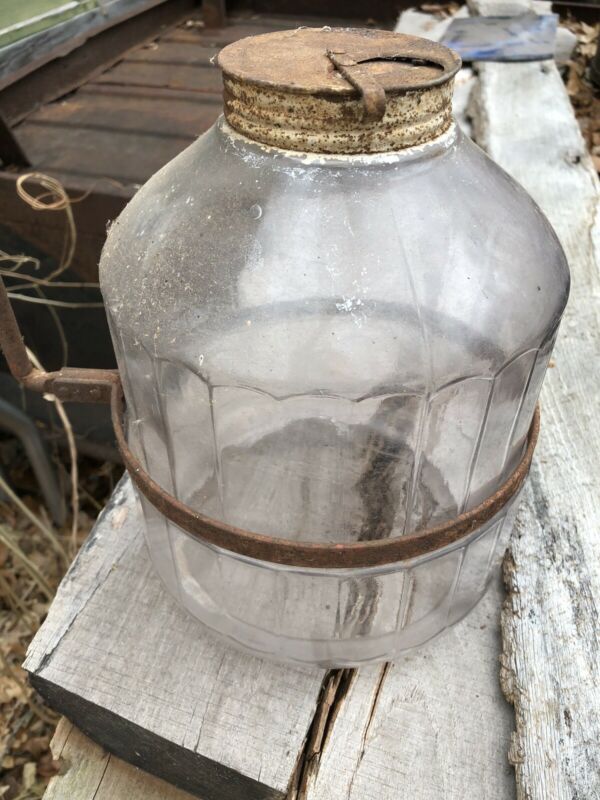 VINTAGE ORIGINAL GLASS HOOSIER CABINET/PANTRY SUGAR JAR And BRACKET 1915 Vintage