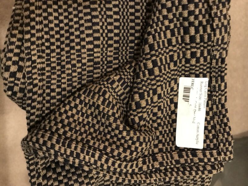 Family Heirloom Weavers Table Runner Linen 16 x 46 New Old Stock. Log Cabin