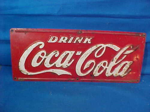 Title (ebay affiliate link): Orig 1930s DRINK COCA COLA Embossed Metal ADVERTISING Small SIGN 14 x 6
