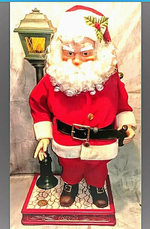 Title (ebay affiliate link): Vintage Coca-Cola Animated Santa Claus Standing next to a light pole
