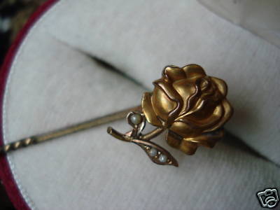 ANTIQUE VICTORIAN ROSE SEED PEARL STICKPIN PIN