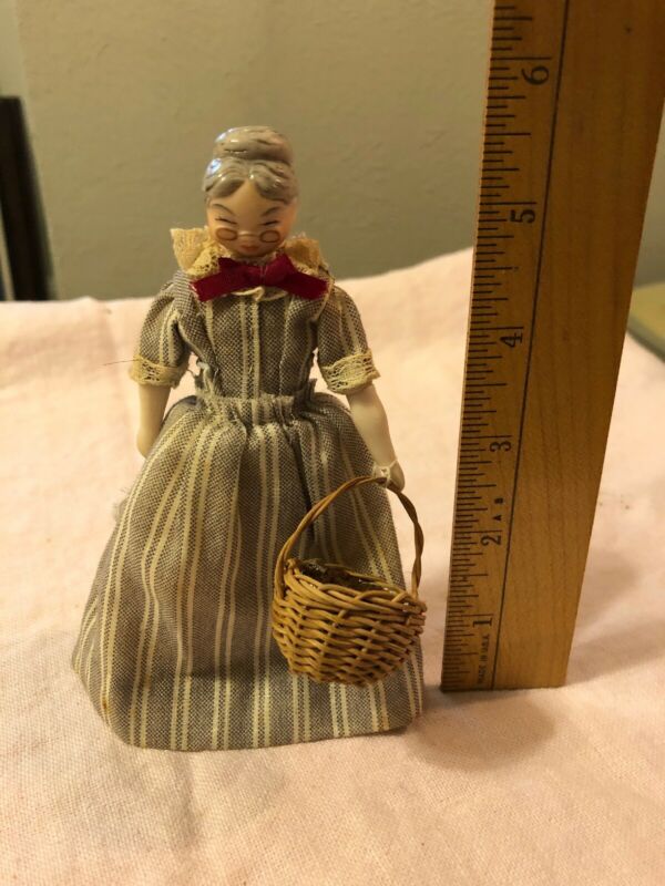 Antique China Head & Limbs W/cloth Body Dollhouse Doll Granny