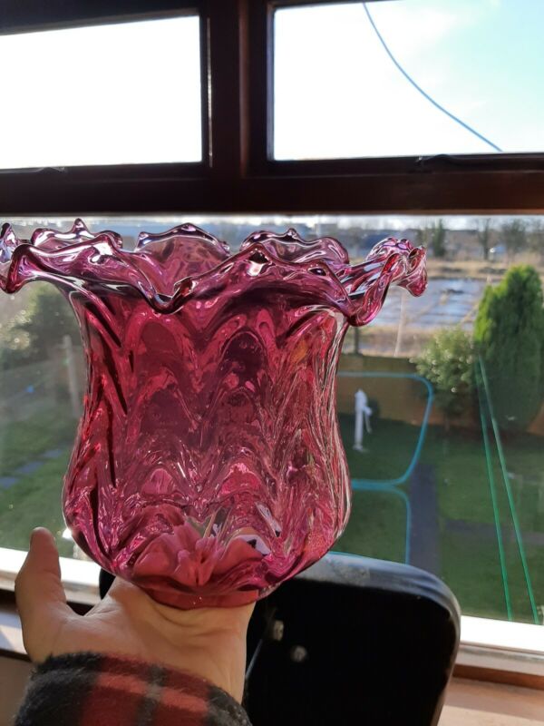a good victorian cranberry swag design and ruffle top shade a1 condition mint