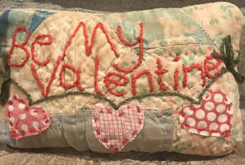 Title (ebay affiliate link): Primitive *String Of Hearts* Valentine Shelf Pillow-Made From Vintage Quilt