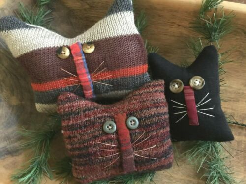 Primitive Old Home Cats Bowl Fillers Set of 3 Christmas Winter