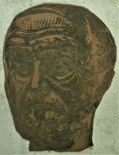 VINTAGE c1950 FOLK ART PRIMITIVE PORTRAIT CARVING OF MAN ON OLD CARPET BACK vafo