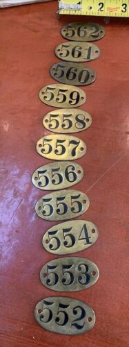 metal tags antique numbers locker # lot box brass hotel door sequential vintage
