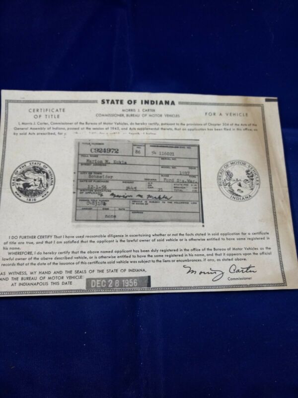 Title (ebay affiliate link): 1937 Ford Station Wagon Indiana Title Historical Document
