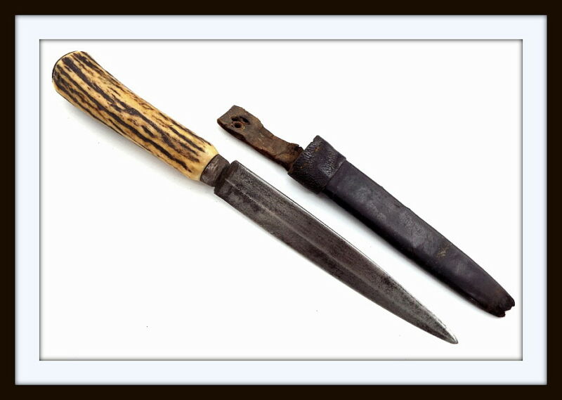 Title (ebay affiliate link): Antique English Scottish or German Stag Gripped Hunting Knife Dirk Dagger.