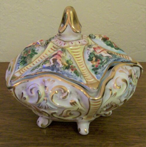 Title (ebay affiliate link): R. CAPODIMONTE DISH WITH LID #3743 Porcelain, Naples, Italy, gold nob