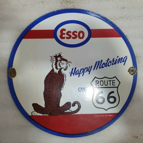 ESSO TIGER 12 INCHES ROUND VINTAGE ENAMEL SIGN