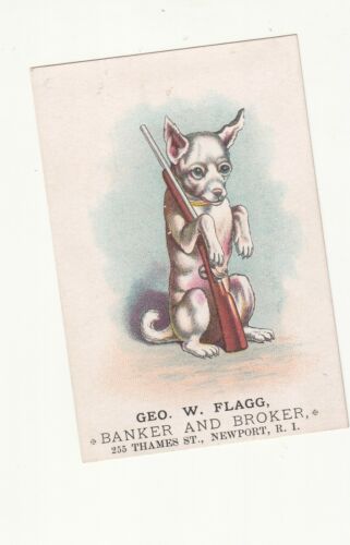 Title (ebay affiliate link): George W Flagg Banker Broker Newport RI Dog w Rifle Gun Vict Card c1880s