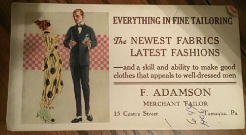 Old Ink Blotter F Adamson Merchant Tailor 15 Centre St Tamaqua PA