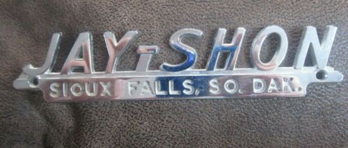 Title (ebay affiliate link): 1950s JAY SHON Car Dealer Emblem Sioux Falls SD Automobile Metal Nice Condition