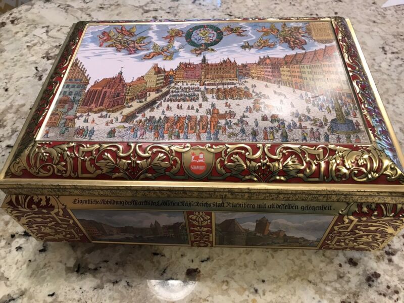 Title (ebay affiliate link): Vtg 2000 E. Otto Schmidt Biscuit Trunk Tin Box Nurnberg Germany Town Center