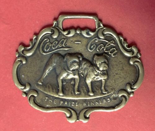 Vintage Brass COCA COLA Watch Fob: Bulldogs Prize Winners 5 Cents; Coke Advert