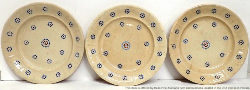 Antique Betsy Ross Family Federal Ironstone Red White Blue Creamware Plates rare