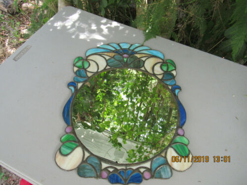 Antique EDWARDIAN ERA~Slag & STAINED GLASS~ Mirror