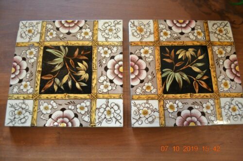 Title (ebay affiliate link): Pair of Victorian Antique Aesthetic Tiles Flowers Brown & White & Yellow SOK