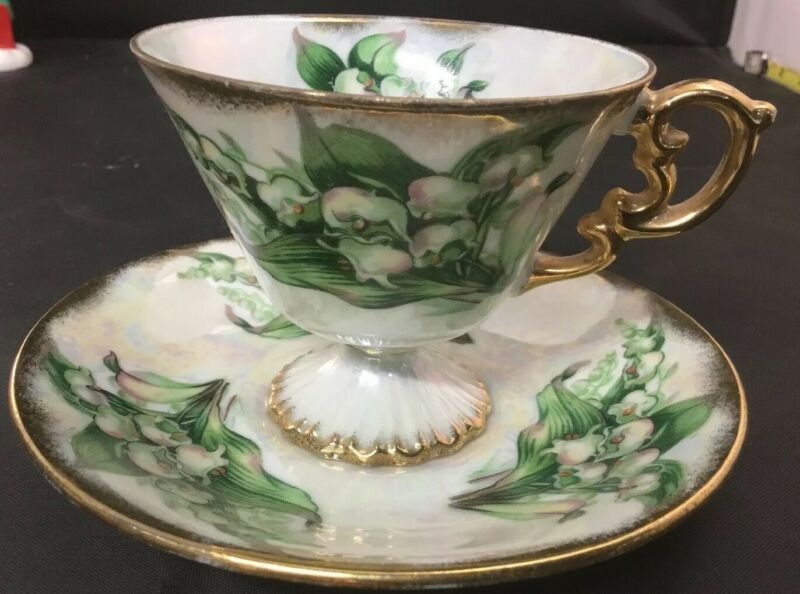 Title (ebay affiliate link): Vintage Ucagco Tea Cup & Saucer May Lily Of The Valley Lusterware Iridescent