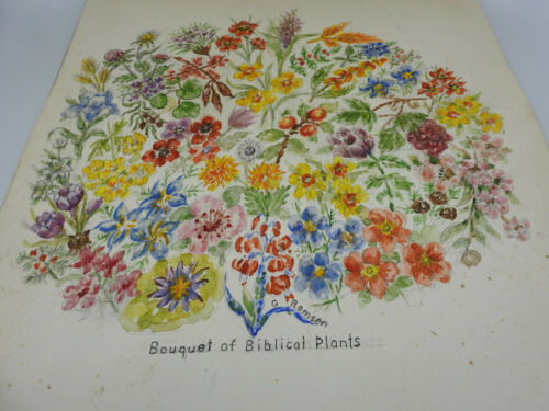 Title (ebay affiliate link): Botanical Bouquet of Biblical Flowers Plants 1950s 18" x 15" Vintage Hand Drawn