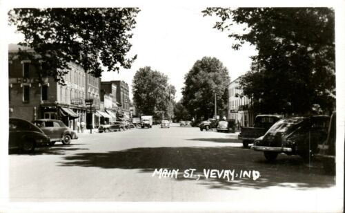 Title (ebay affiliate link): Vintage RPPC Postcard Vevay IN "Main Street" Drug Store Ice Cream Shop